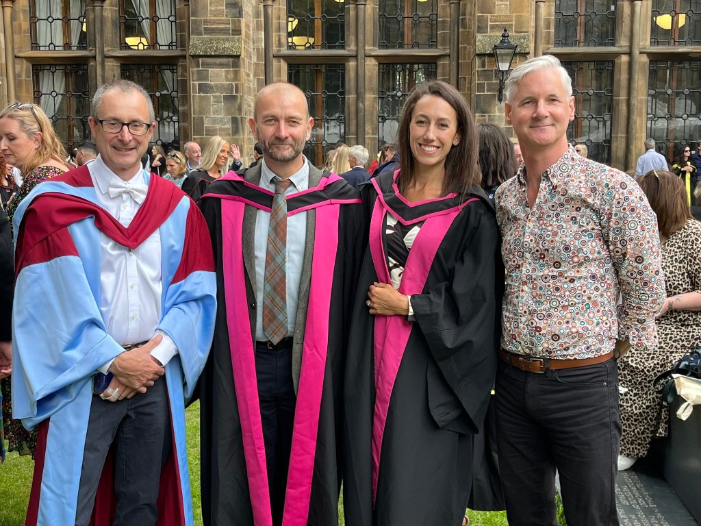 Huge congratulations to Dr Heather McClelland and Dr Dave Sandford on their PhD graduations this week (29th June 2023), with Jon Evans and Rory O’Connor (supervisors). Sadly missing from photo, Olivia Kirtley, Dave’s co-supervisor.